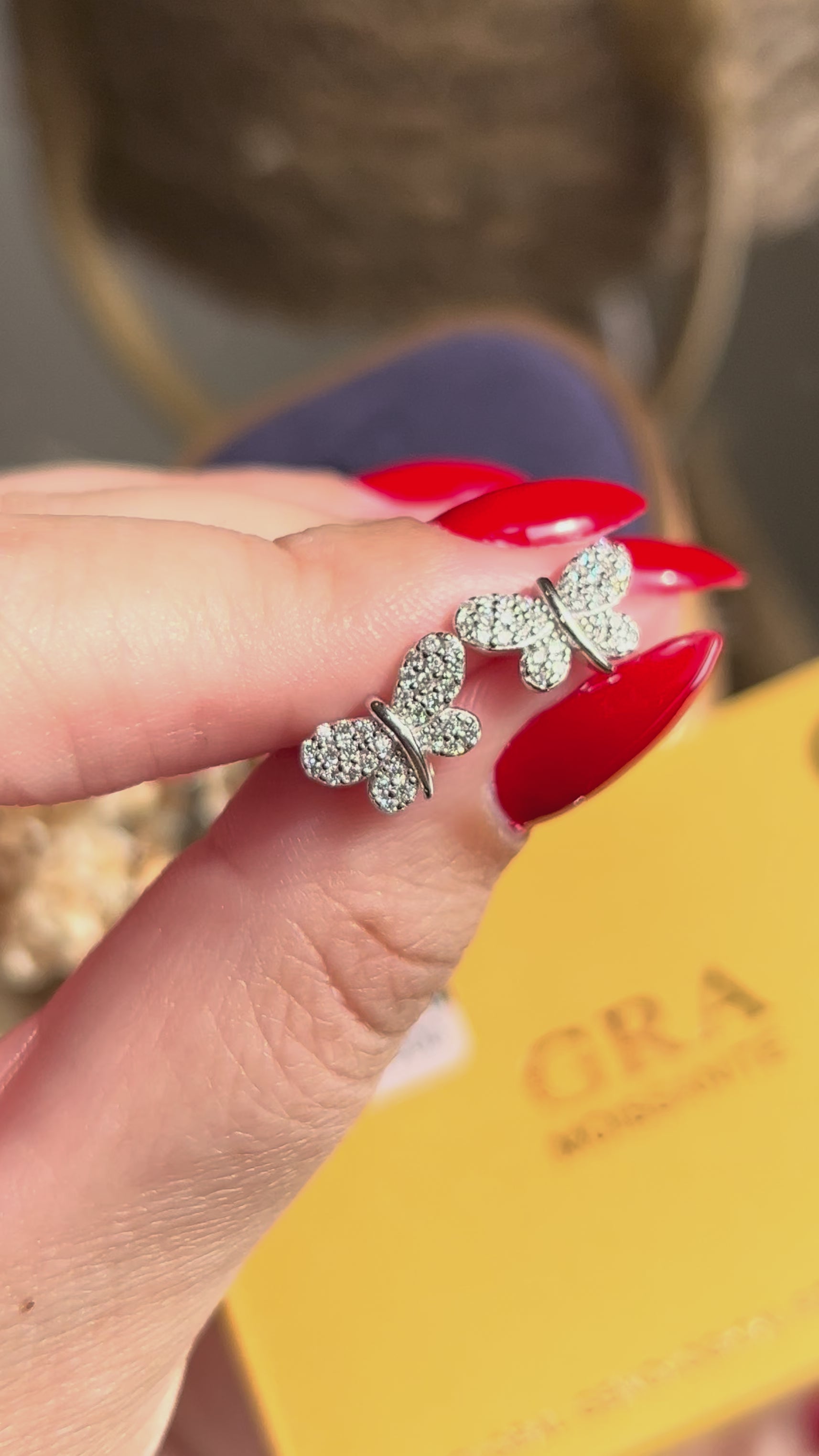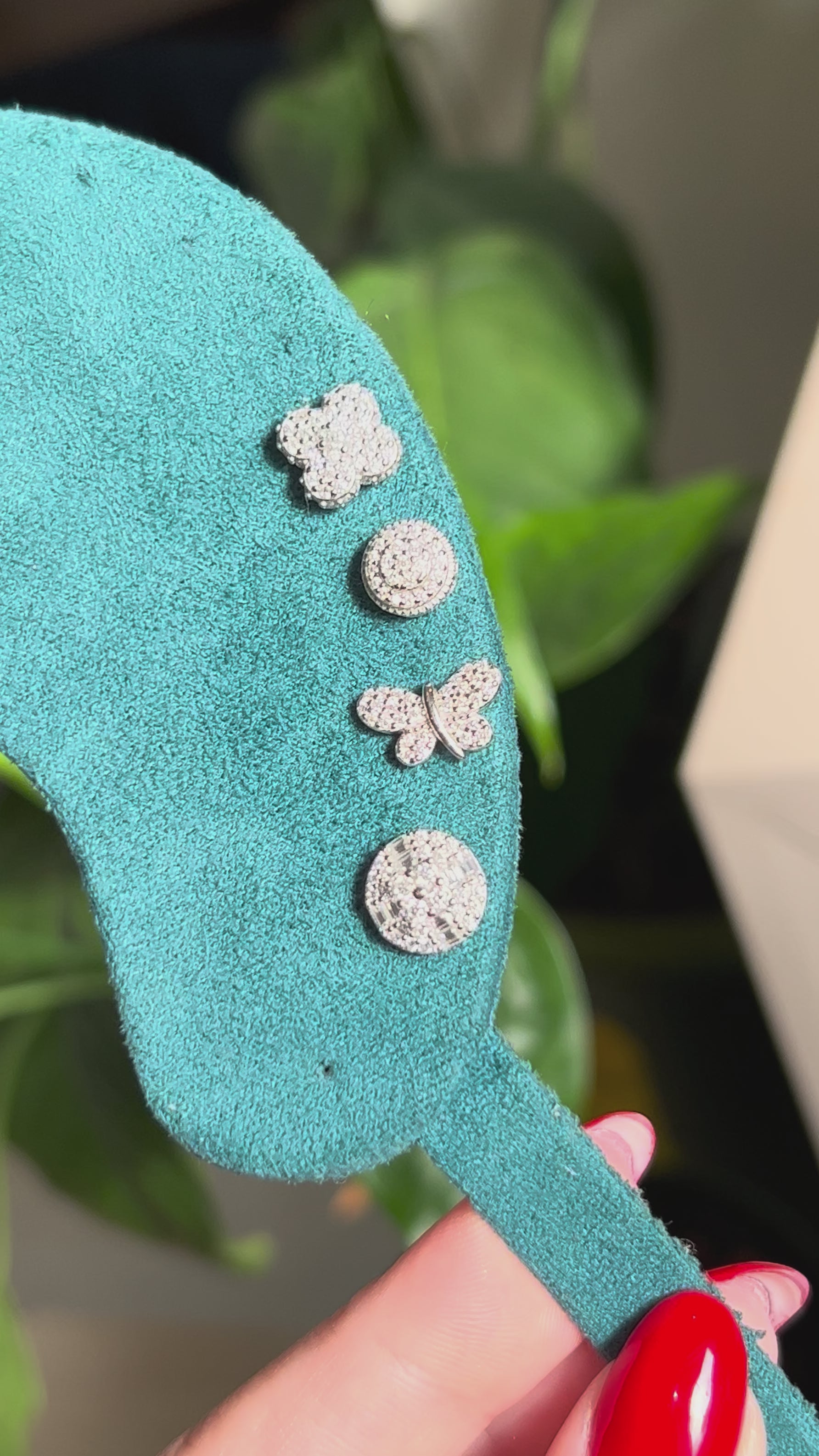 moissanites cravejadas em cada lado do brinco.