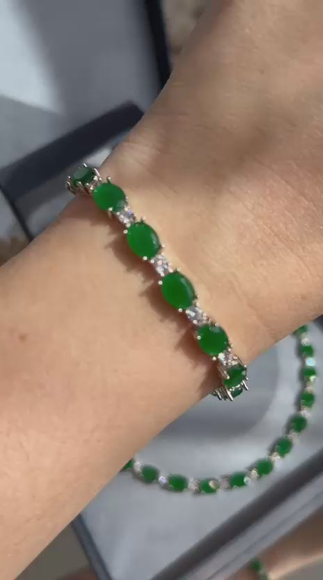 Colar Riviera Oval Verde Esmeralda Dourado