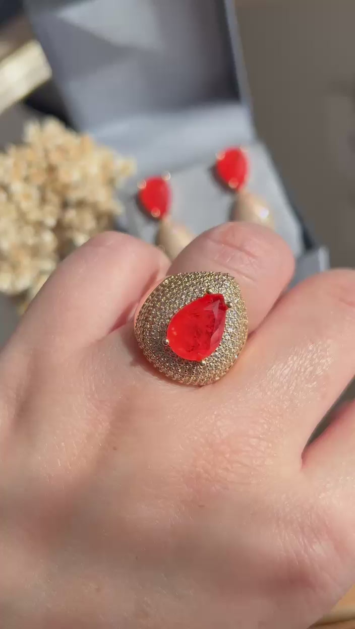 Conjunto Brinco e Anel Gota Tangerina