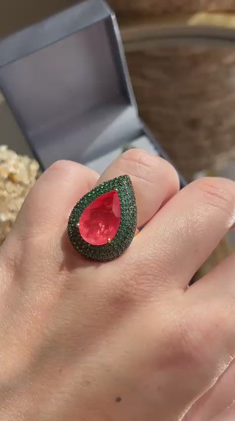 Conjunto Brinco e Anel Gota Verde e Tangerina