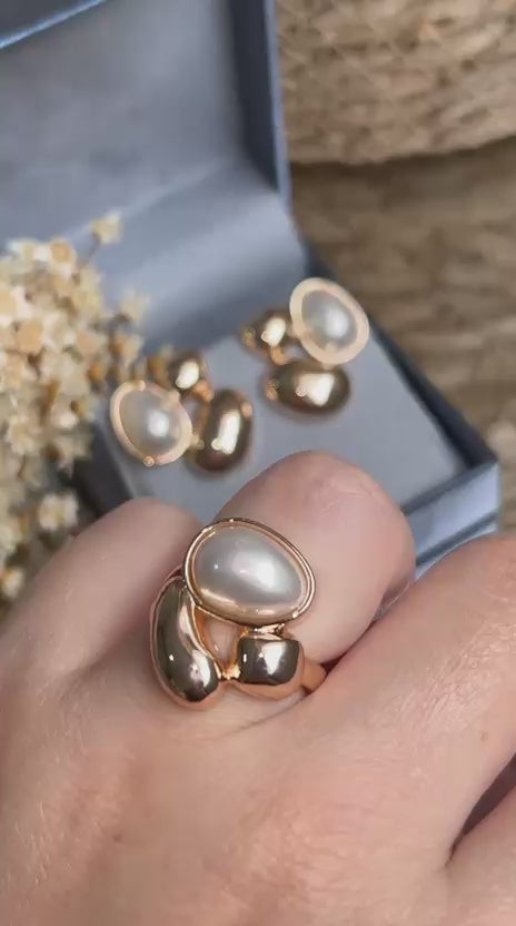 Conjunto Brinco e Anel Organico Detalhe Pérolas