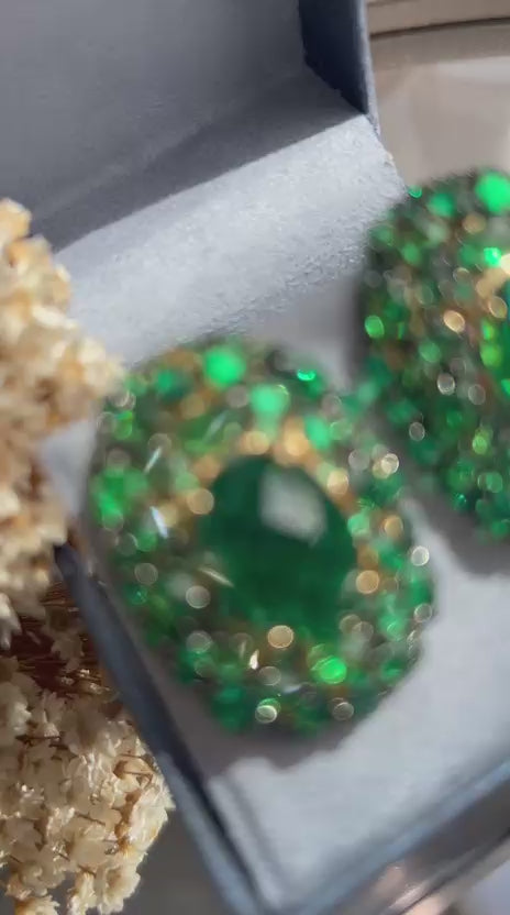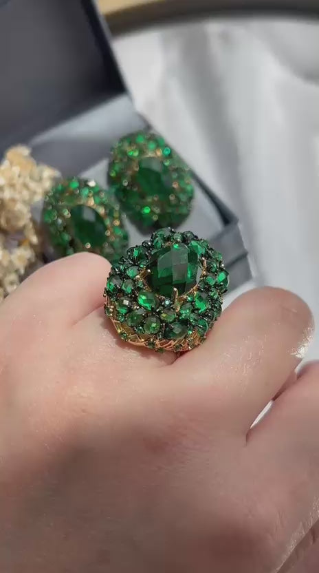 Conjunto Brinco e Anel Oval Maxi Verde Esmeralda