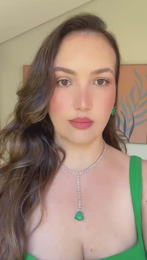 Conjunto Brinco e Colar Gravata Pedra Triangulo Verde Esmeralda