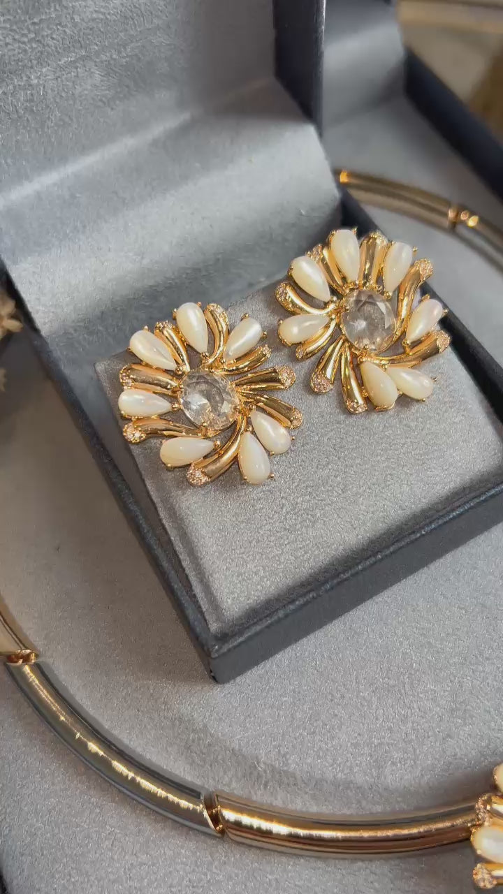 Conjunto de Brinco e Pingente Branco Olho de Gato